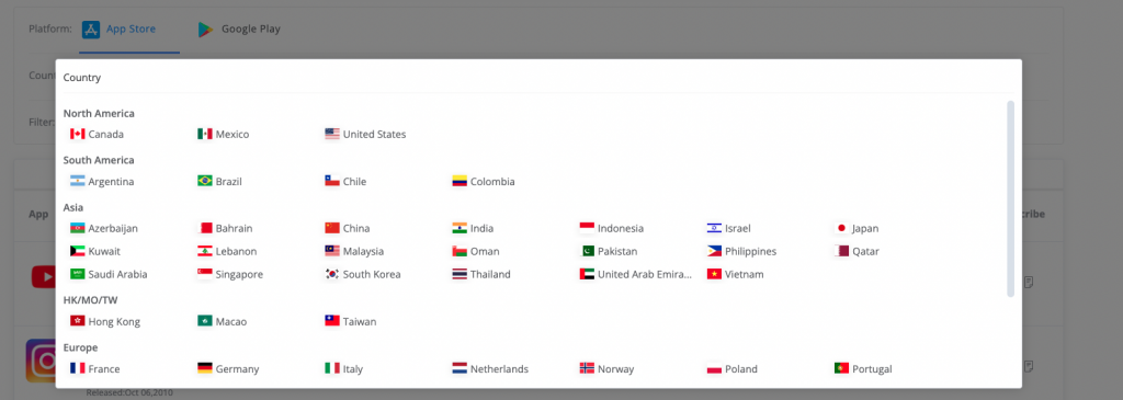 By screening different countries and regions, you can instantly master different data rankings. It saves you the time spent switching between mobile device among different stores and countries to get store rankings. At the same time, by filtering the score, comments and release date, you could reach the search results that are of high significance to your reference.