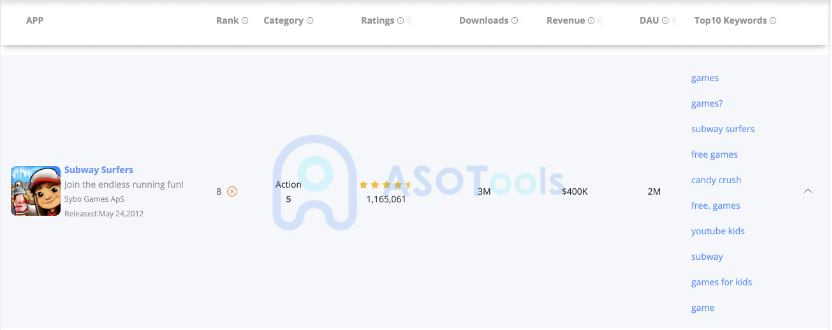 You could get more useful data from ASO tools. As we all know, downloads, revenue and DAU&MAU are private data of each developer, which determines an app successful or not. By using ASO tools, you could easily spy head apps and your competitors.