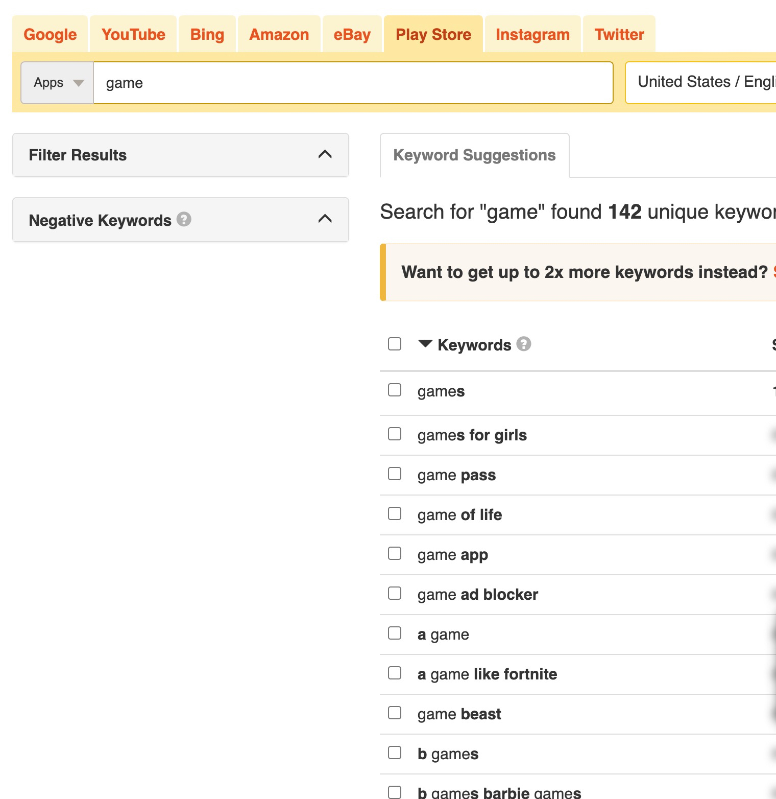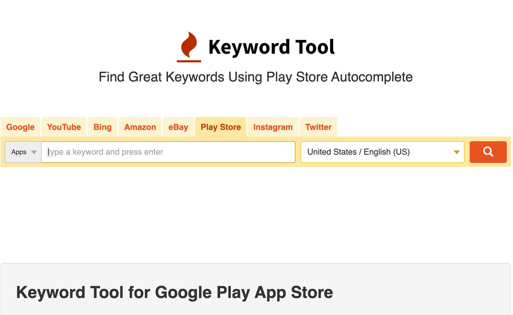 keywordtool.io uses the App Store auto-completion function to generate keywords based on the search terms you specify. It uses different letters and numbers to add prefixes and suffixes to your keywords, resulting in hundreds of search recommendations from Google Play app stores (similar to Google recommendations) the keyword of the app store extracted from.