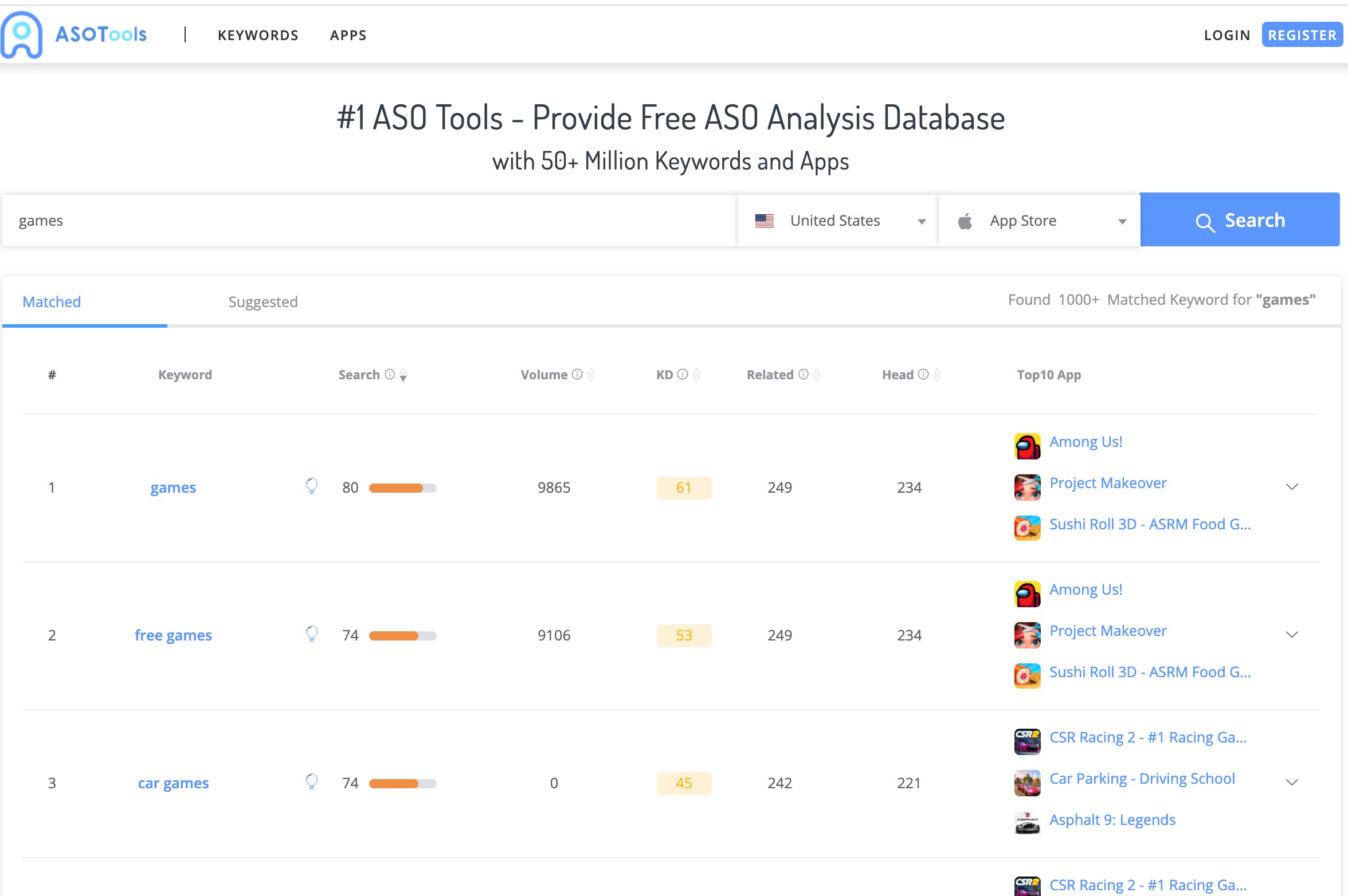 This is a completely free keyword mining tool for app stores. You can use it without spending a penny. You only need to register. Isn’t it great?