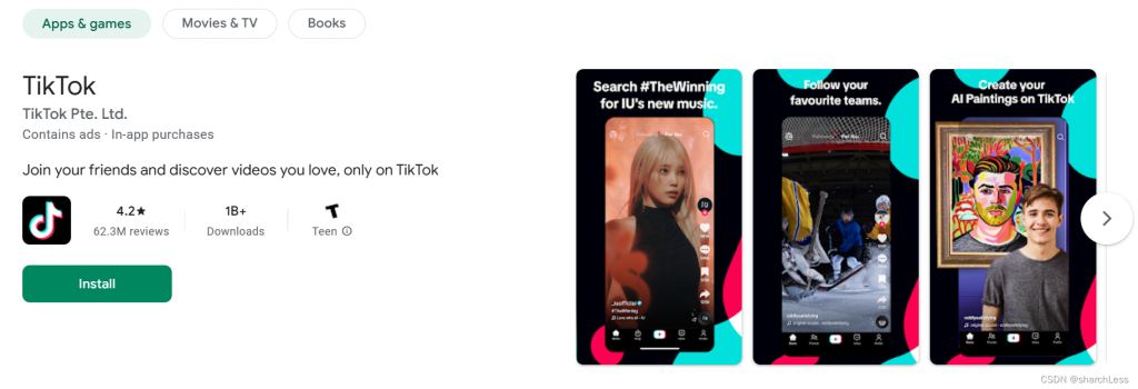 In the traditional way, for download data, you can directly view it on the app store or google play. As an example, tiktik has 1B+ downloads on google play. You can monitor the specific data changes on a daily basis by yourself. From there, you can get the download data of the app.